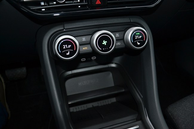 Нижче знаходиться дворівнева ніша з USB-портами та бездротовою зарядкою для смартфонів. Взагалі, в Skoda Kodiaq вистачає відсіків для дрібних речей. Кросовер має одразу два бардачки, глибокий бокс у підлокітнику та невеликий відсік зліва від керма. У нього чималі кишені в дверях та аж 7 підсклянників.