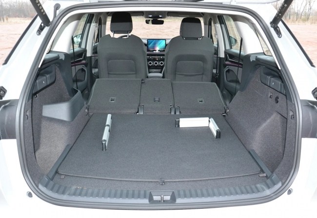 Нам на тест потрапив п’ятимісний кросовер Skoda Kodiaq, а третій ряд сидінь пропонується за доплату. Така версія має свою перевагу, адже в неї дещо більший багажник: 910 л у звичайному стані та 2105 л - зі складеними задніми кріслами.